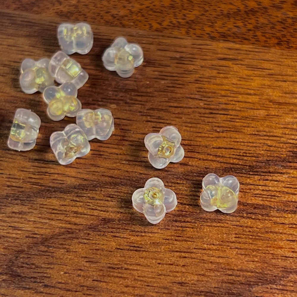 - Earring back is a gold plated brass rubber backing, very comfy!